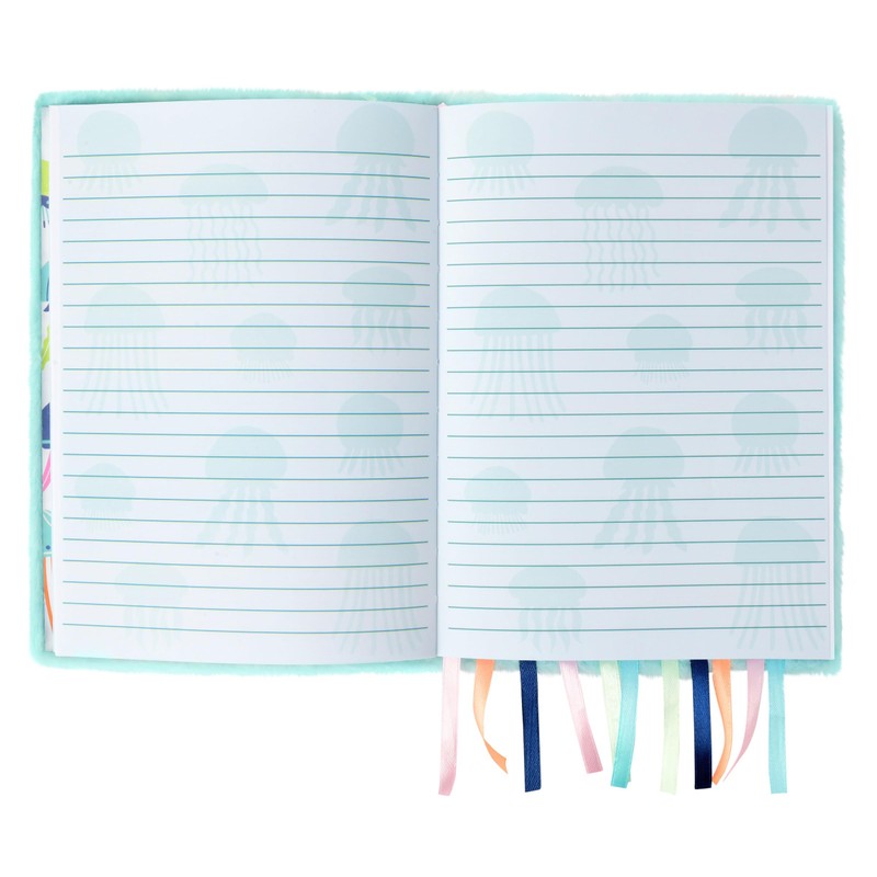 iscream Plush Fur Book-Bound Lined-Page 8.5" Ribbon Accent Journal - Joyous Jellyfish