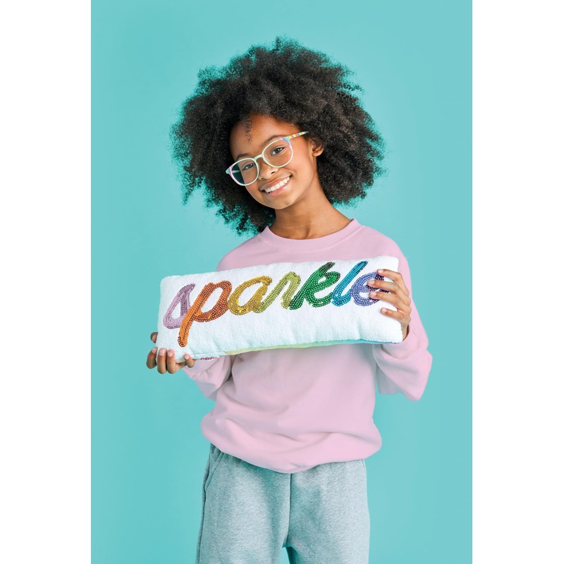 iscream Rainbow Sparkle Chenille, Sequin and Fleece 16" x 6" Rectangular Accent Pillow