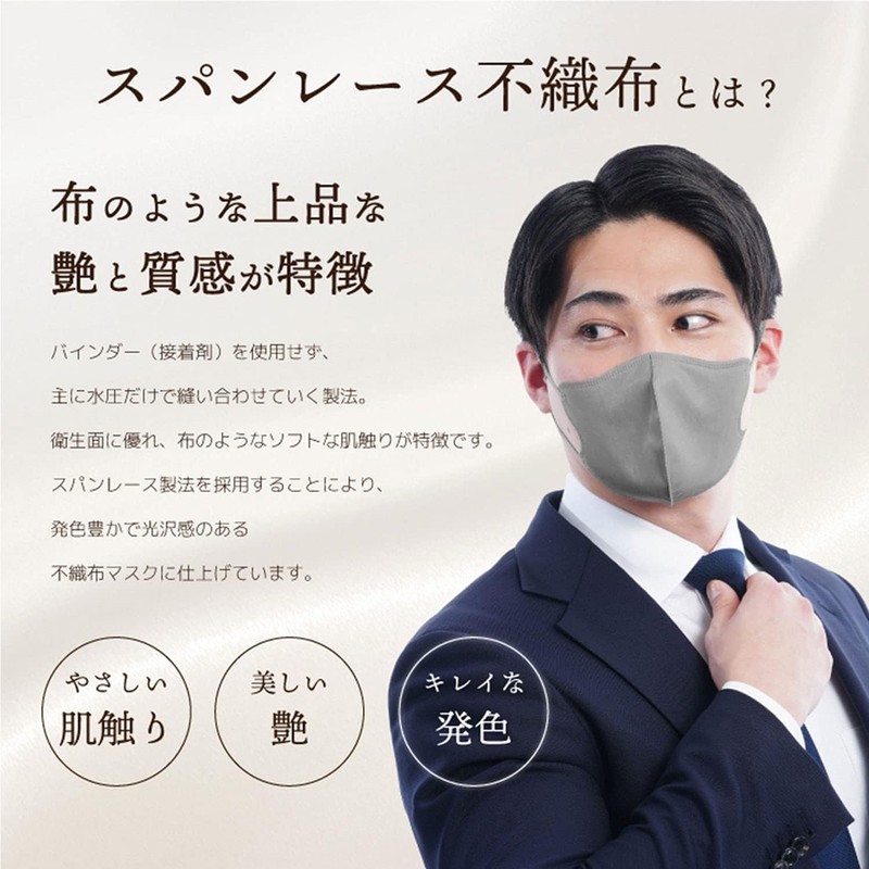 - 【特徴(耳ゴム)】不織布マスクなのに、おしゃれな立体型!機能にもこだわり、99%カット不織布フィルターを使用。耳ゴムにもこだわり、長時間の着用でもストレスの少ないふわふわ平ゴムを使用。カラーマスクでは耳ゴムは白いものも多い中、耳ゴムまでこだわりの染色を行っています。