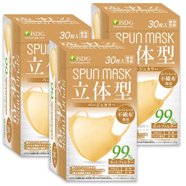 iSDG Dotcom 3D Spun Lace Non-woven Color Mask, 90 Sheets, 30 Sheets x 3 Boxes, Beige 30 Sheets x 3 Boxes