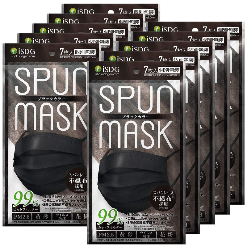 ISDG Dotcom Spunlace Non-woven Color Mask, Individually Packaged, 7 Pieces, Black, 10 Bags