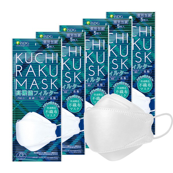 [医食同源ドットコム] ISDG KUCHIRAKU MASK (クチラクマスク) 使い捨てマスク 5枚入り 5袋セット (ホワイト)