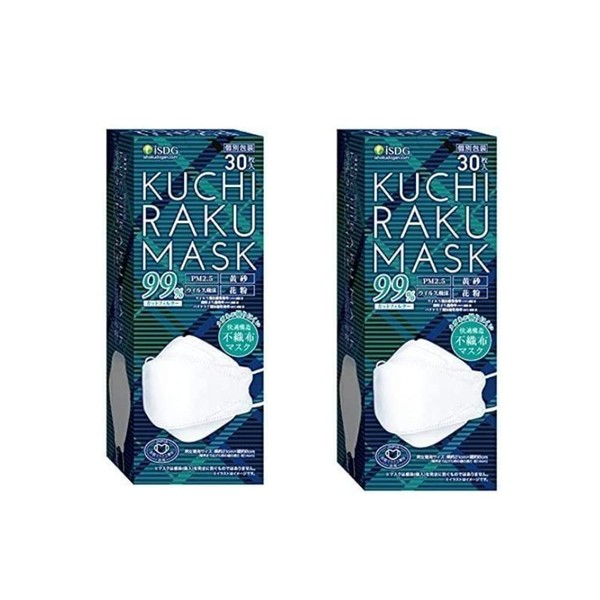 iSDG KUCHIRAKU MASK Dotcom, White, 30 Sheets x 2 Boxes, Set of 2 Boxes