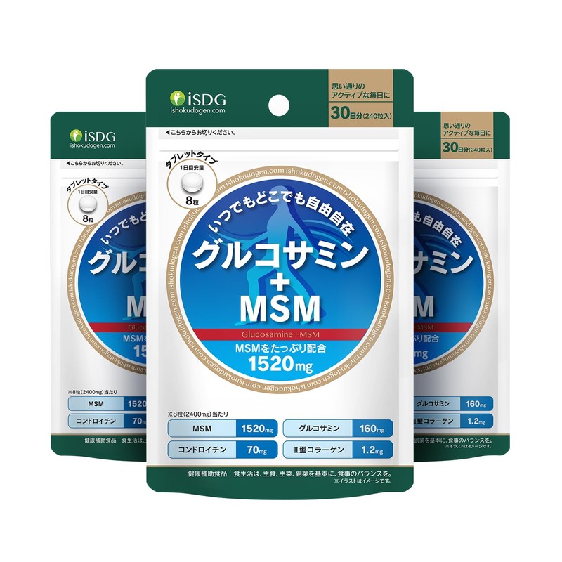 [医食同源ドットコム] iSDG グルコサミン+ MSM サプリメント 1520mg MSM(有機イオウ) Ⅱ型コラーゲン配合 国内製造 240粒 30日分 (3個セット)