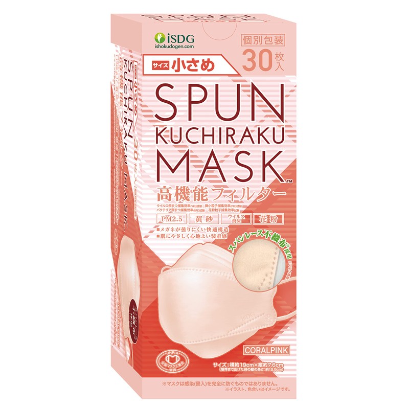 iSDG SPUN KUCHIRAKU MASK, Small, Individually Packaged, Pack of 30, Coral Pink
