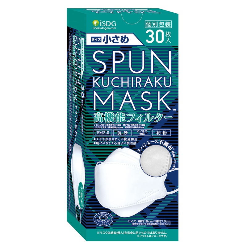iSDG SPUN KUCHIRAKU MASK, Small, Individually Packaged, Pack of 30, White