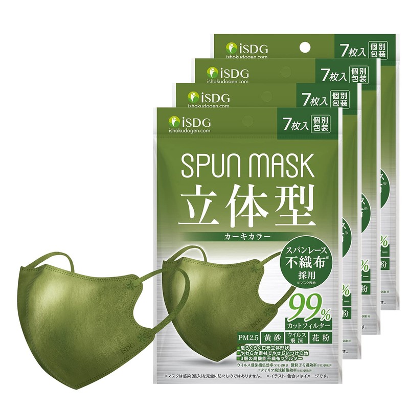 ISDG SPUN MASK 3D Spun Lace Non-woven Color Mask, Individually Packaged, Pack of 7, Khaki (4 Bags)