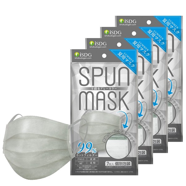 ISDG SPUN MASK Spun Lace Non-woven Fabric & Gauze Mask, Individually Packaged, Set of 7, Gray, Set of 4 Bags