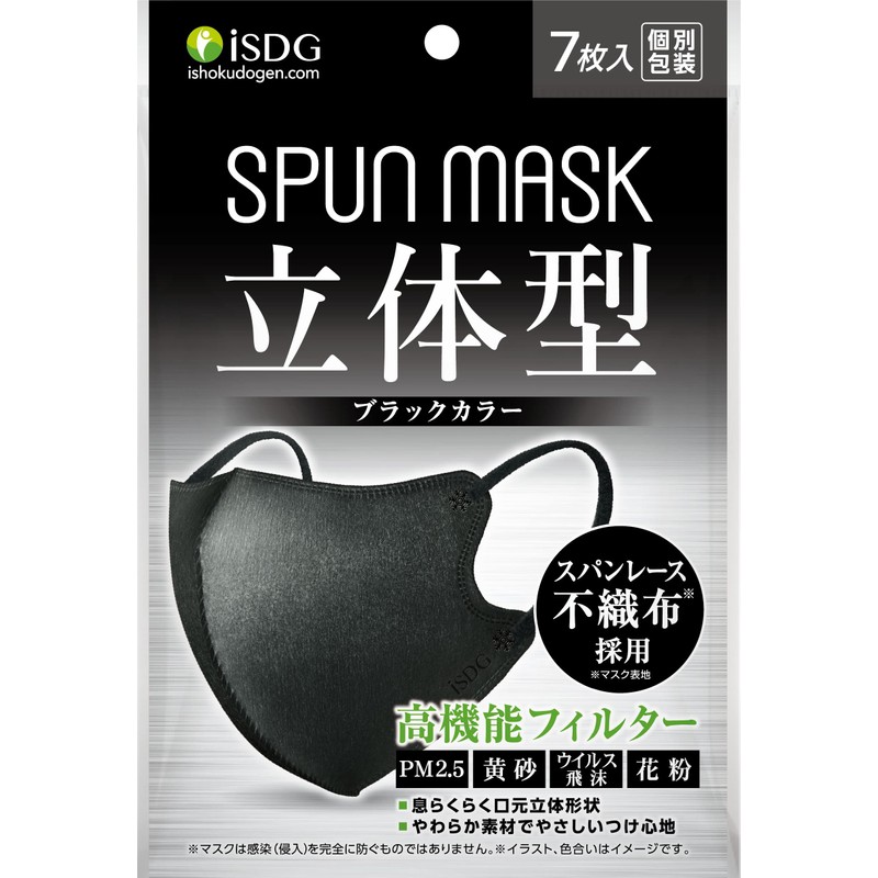 ISDG SPUN MASK Spunlace Non-woven Color Mask, Individually Packaged, Pack of 7, Black