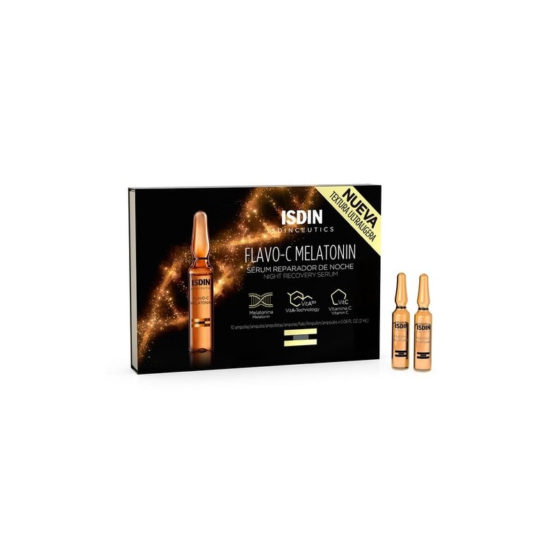 ISDIN Flavo-C Melatonin Facial Ampoules is a face serum in ampoules with antioxidant activity, which works at night.