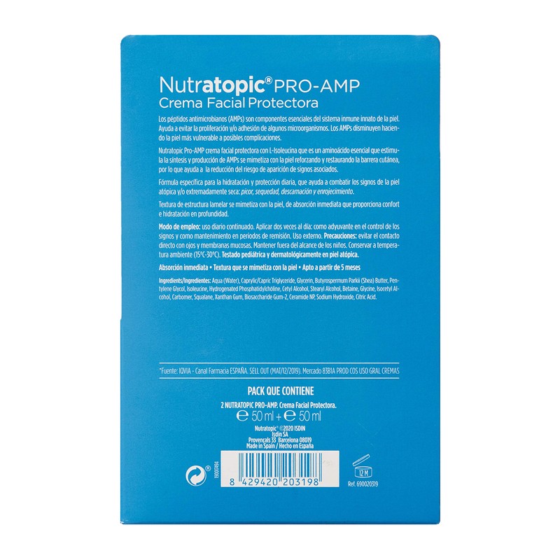 Isdin Duo Nutratopic Pro-Amp Facial Cream Atopic Skin is a promotional pack comprising two units of a care product that helps strengthen the skin barrier to visibly reduce the signs of atopic skin.