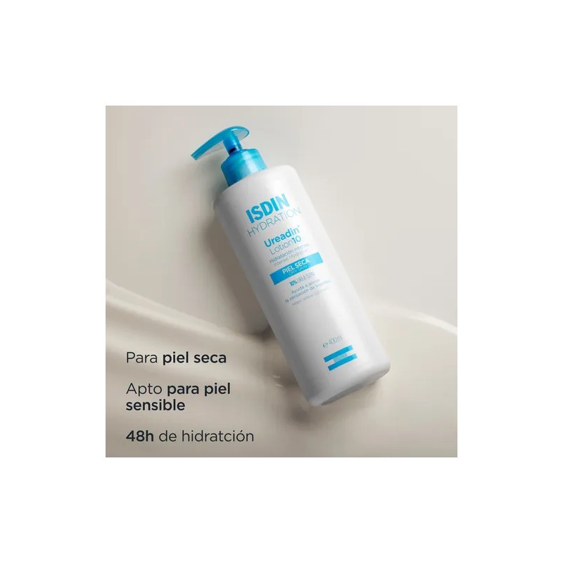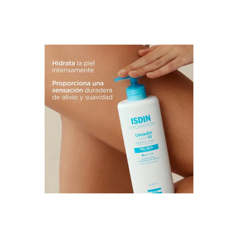Loción corporal hidratante intensiva y duradera para el cuidado y protección de la piel seca. Estimula la renovación de la piel, reduciendo la sensación de tirantez de la piel. Hidratación inmediata y duradera gracias a la Urea ISDIN 10% que retiene el agua y restablece los niveles óptimos de hidratación. Textura ligera y de rápida absorción. Apto para piel sensible.