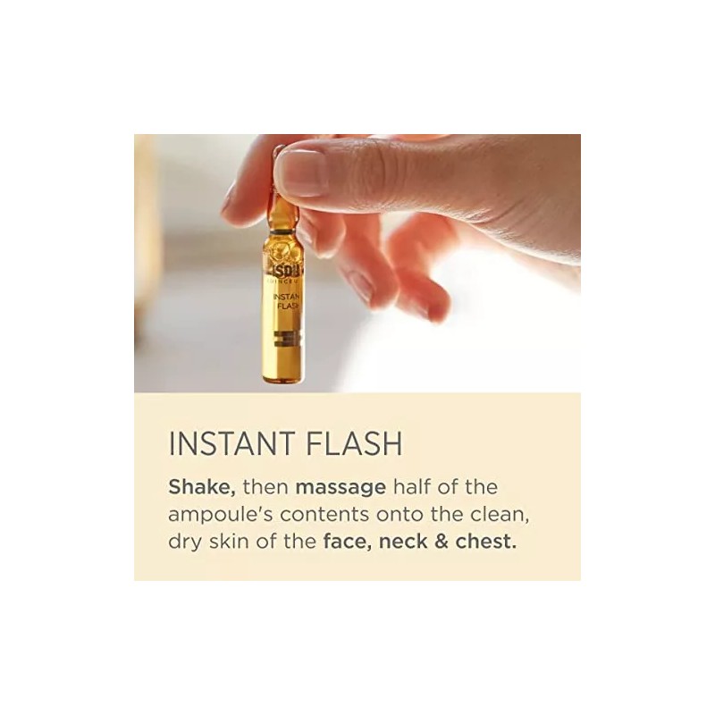 Isdinceutics Instant Flash. Solución facial en ampolletas con un conjunto de avanzados activos que promueven un efecto lifting inmediato y prolongado hasta 8h que rejuvenece la apariencia del rostro.