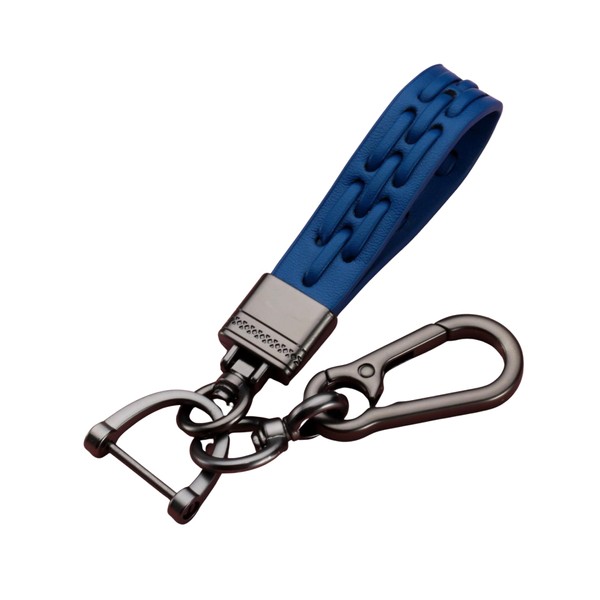 ISDORE Leather Car Fob Keychain, Universal Key Chain Holder for Unisex, 360 Degree Rotation, with Anti-lost D-ring (Blue)