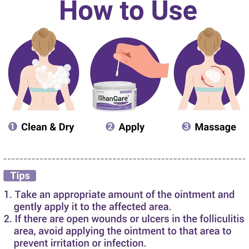 - Fast ReliefiShanCare folliculitis cream will not irritate your skin and helps you can quickly relieve the folliculitis symptoms without a long wait and see a visible change in just a few days.