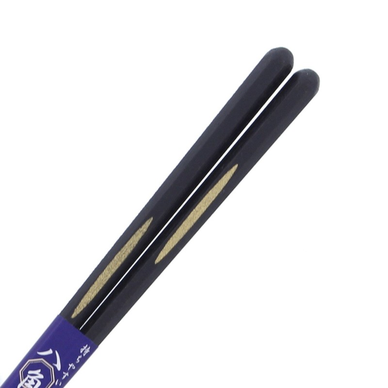 Ishida Chopsticks Octagonal Pure Gold Water Surface Wooden (Natural Wood) Lacquer Tip 9.1 inches (23 cm) Black