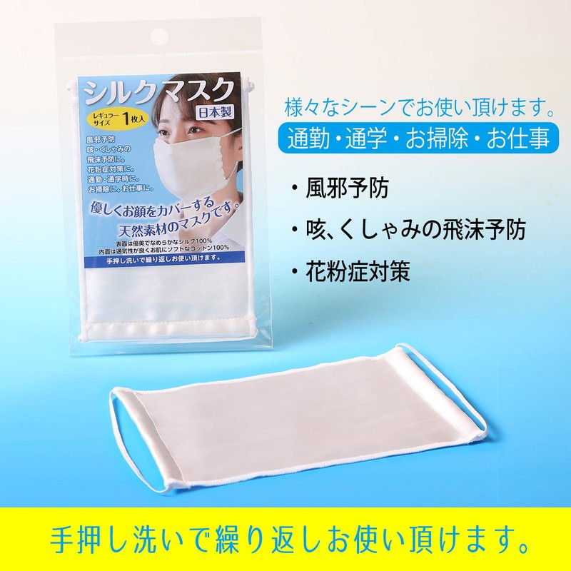 Ishimizu Silk Mask (Regular Size) Size: Approx. 4.7 x 6.9 inches (12 x 17.5 cm).