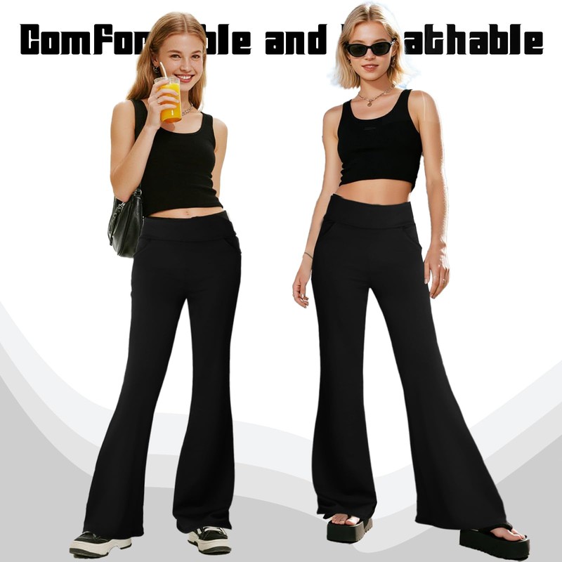 - High-Waisted Design Wide Leg Yoga Pants Women for a Slim Look: These wide leg yoga pants for women feature a high-waisted fit with a straight-leg silhouette that gently stretching, slimming your figure and elongating legs. The classic black shade is easy to match—pair with cropped tees for casual vibes, tanks and sunglasses for chic style, or sunshirts for a sporty look