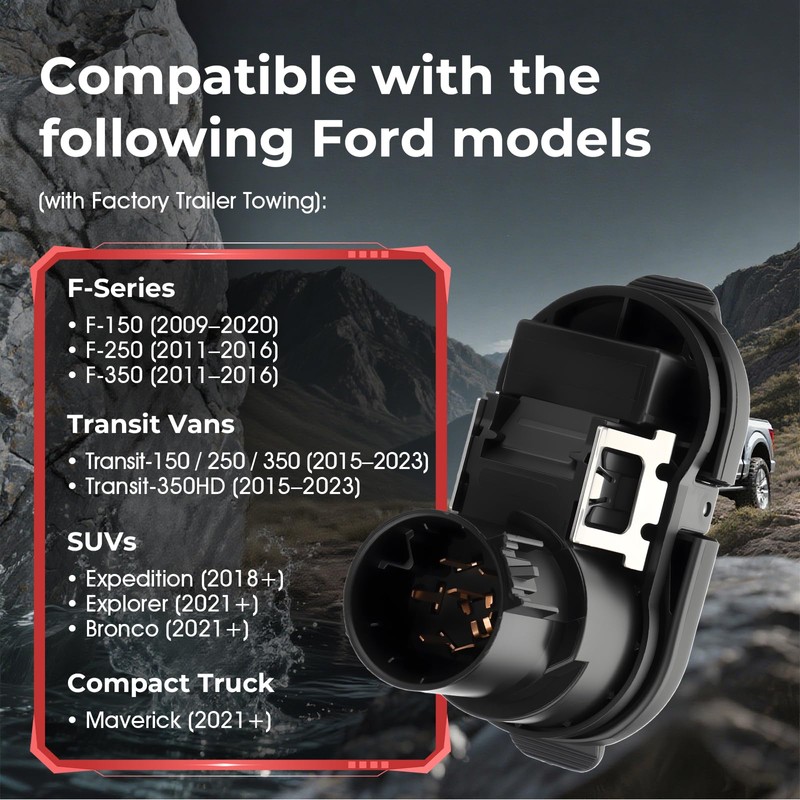 - 【Universal Fit Replacement】 – 7 RV Blade + 4 Flat connectors Direct fit for vehicles with a factory USCAR 7-way trailer socket; works with trucks, SUVs, RVs, and trailers, Fit for Ford F-150 (2009-2020), Transit-150/250/350 (2015-2023), Expedition (2018+)