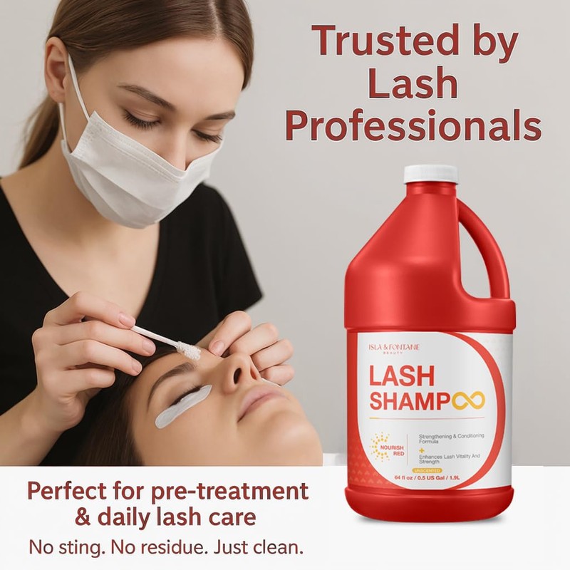 Isla & Fontane Lash Shampoo – Nourish Red 64 fl oz | Strengthening Lash Foam Cleanser for Extensions | Biotin & Keratin Lash Care | Bulk Size for Salon Use & Home Use