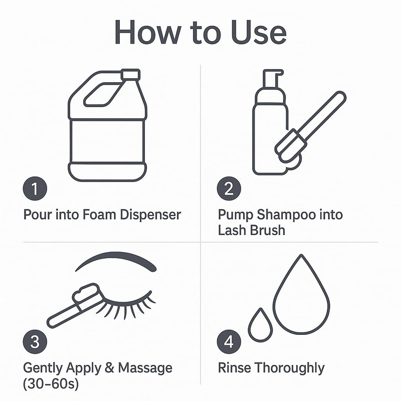 - Economical Salon Size: This 0.5 gallon (1.9L) bulk bottle fills over 30 foaming lash shampoo bottles—ideal for lash studios offering premium service and hygiene.