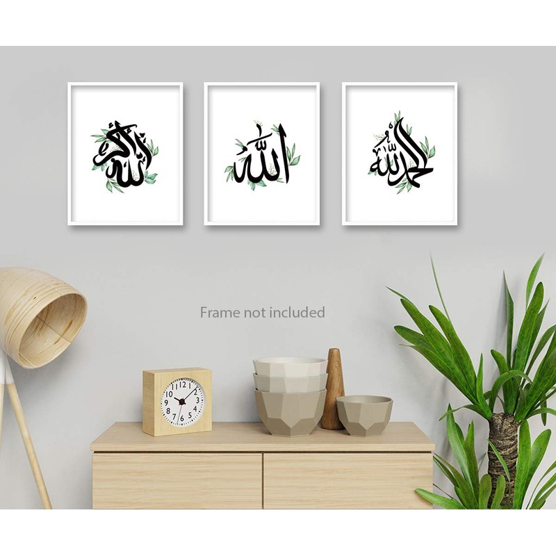- SET OF 3 UNFRAMED 8”x10” PRINTS – This collection includes three high-quality professionally printed Islamic calligraphy posters. Please note that frames are not included; the displayed frames are for visualization purposes only