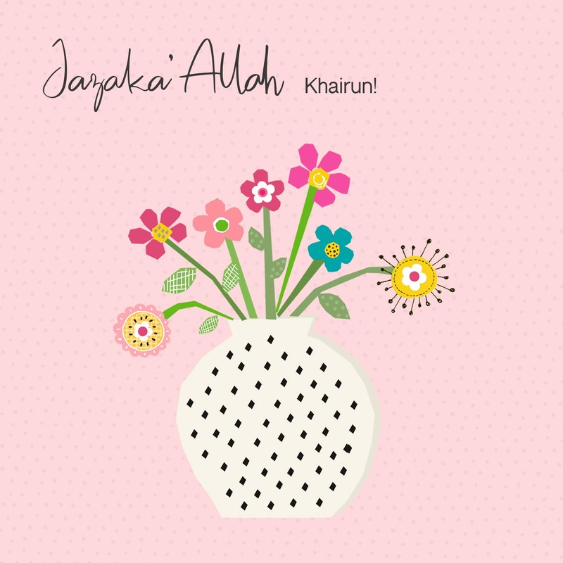 - An elegant Jazaka' Allah Khairun card by Islamic Moments. Jazaka' Allah Khairun translated from Arabic is an Islamic expression of thanks and gratitude and means "May Allah reward you with goodness". The perfect way to thank someone for their help, this is sure to bring a smile to the recipients face. This charming thank you card is from our new 'Bijou Boutique' series of Islamic greeting cards.