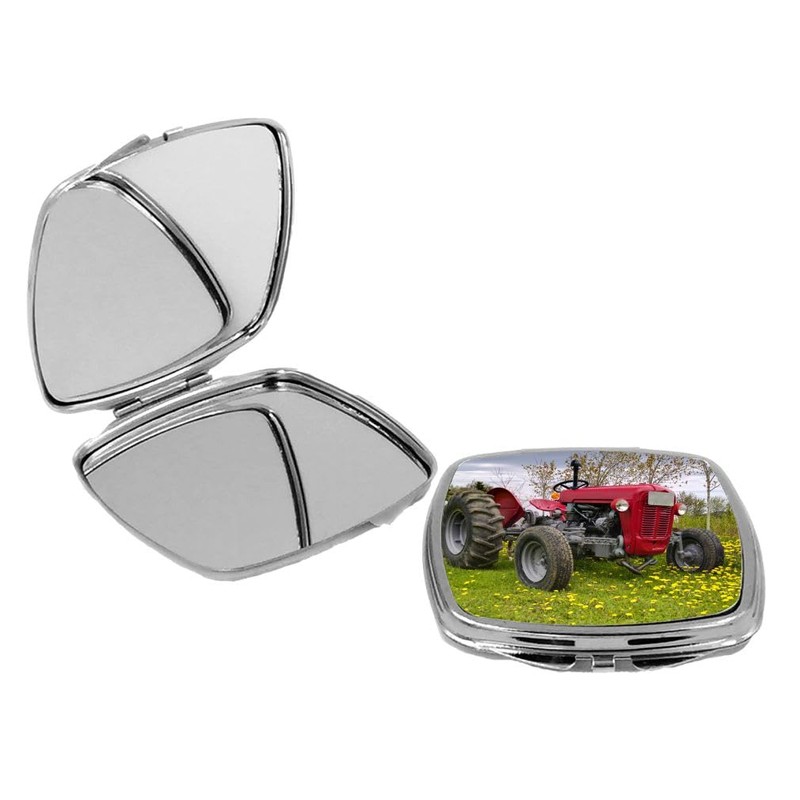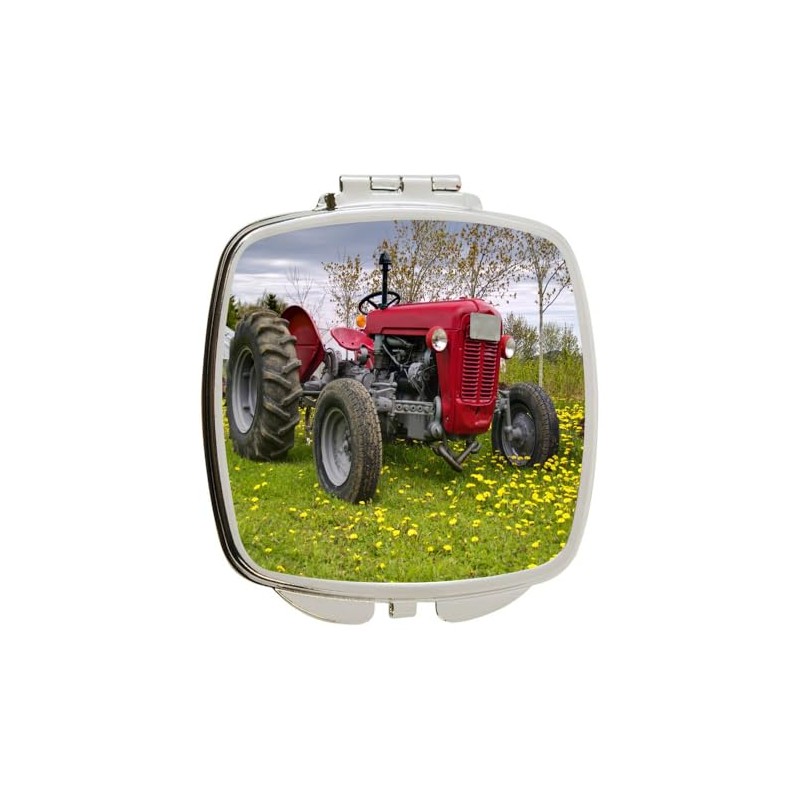 Island Gifting - Farm Tractor in Green Field Yellow Flowers - Square Compact Mirror - Travel Mirror