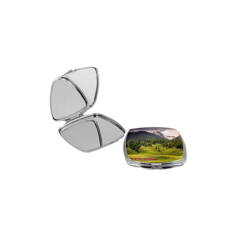 This personal beauty compact mirror features two mirrors and an easy secure hinged open close latch which making it ideal for travel, and measuring just 2.5” Square, with a double mirror in a lightweight metal frame the perfect size to slip neatly into your purse, pocket, pencil case, or wallet. The image is printed with high quality vibrant color ink system that will ensure that the quality stays sharp without fading over time.