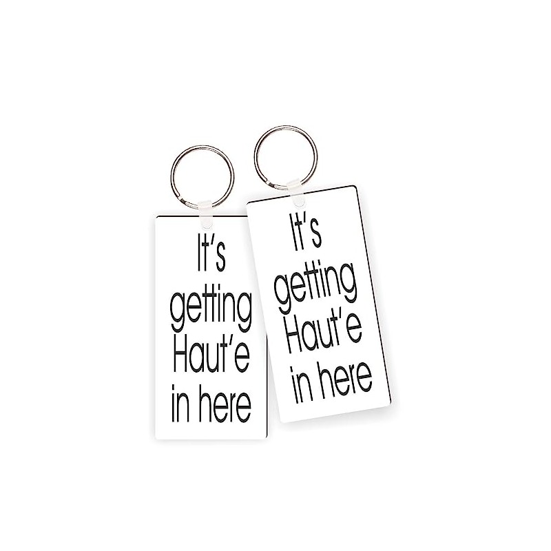 Island Gifting - It's Getting Haute in Here Fashion Keychains and Keyring with Nickel Split Ring, Funny Haute Couture Masonite Gift for Trendsetters(x12)