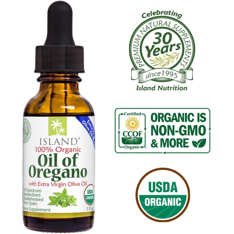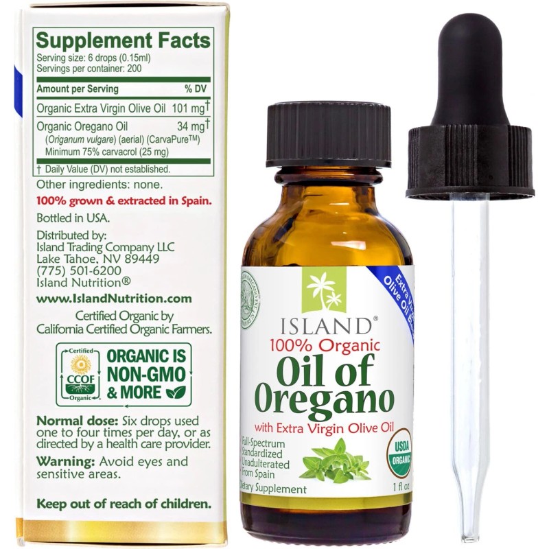 Island Nutrition, Oil of Oregano Organic Liquid Drops (1 fl oz) - Blend of Organic Oregano Oil & Olive Oil, Grown in Spain