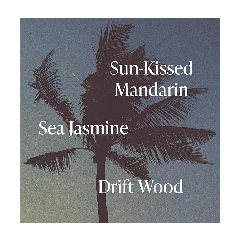 With notes of jasmine, frangipani, driftwood and warm musks. It smells like tropical flowers in a warm beachy breeze.