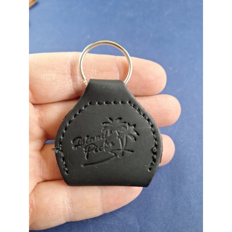 Island Picks Mini Pocket Black Leather Keychain Key Ring Hangtag Palm Trees *5FB