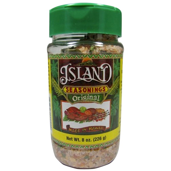 Island Seasonings Original Hawaiian Salt seasoning. Made in Hawaii from sea salt, cane sugar, garlic, onion, black pepper, chives, ginger and other spices. Use to flavor your meats, vegetables, soups and stews. Great for BBQ, sprinkle, marinate or rub, beef, poultry, pork, fish or vegetables. NO MSG