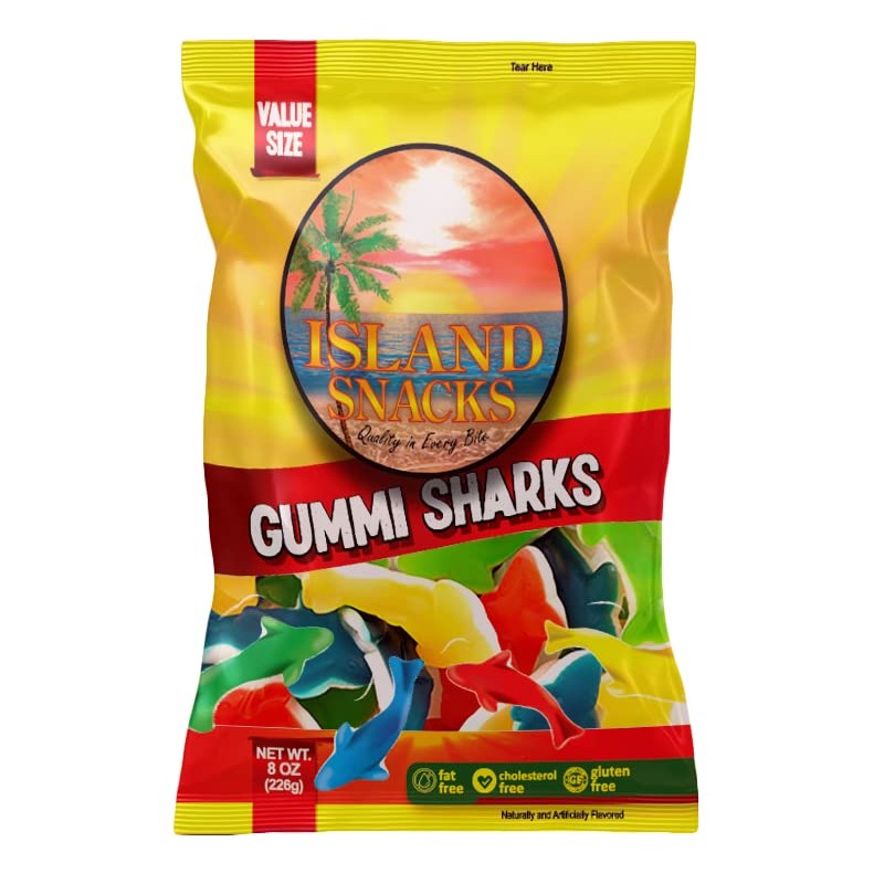 Island Snacks Gummy Sharks, 8 Ounce, 6 Count
