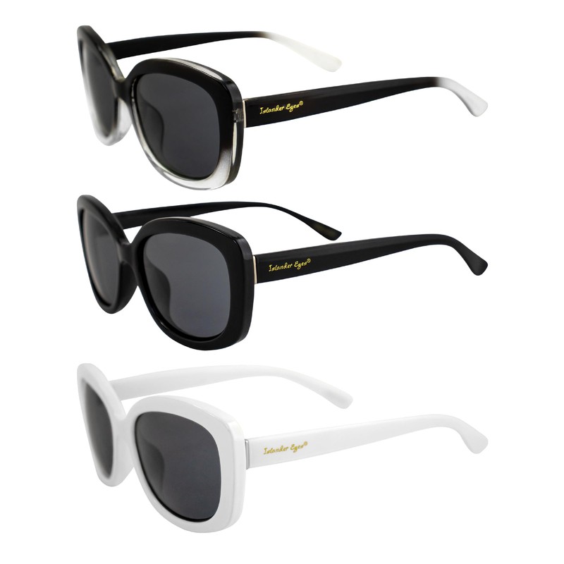 Islander Eyes Dominica Polarized Sunglasses for Women 3 Pairs Gradient Black-Clear White & Black Frames w/Smoke Lenses