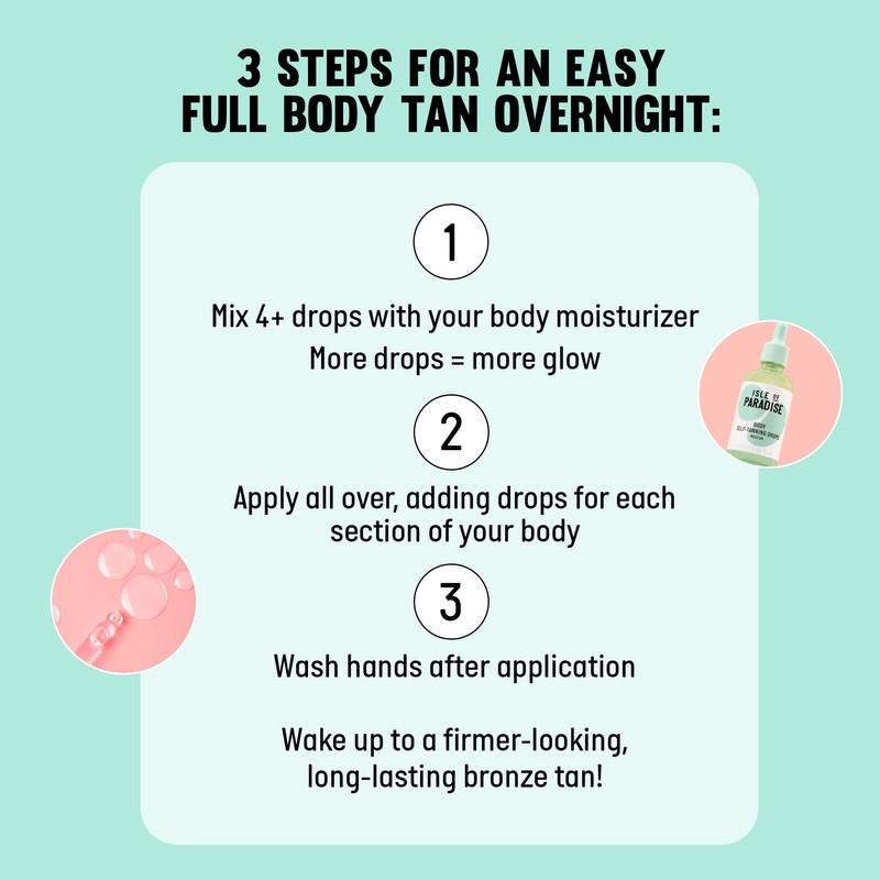 - The world's first colour-correcting Self-Tanning Drops that you mix with your favourite moisturiser for a custom glow have now been formatted specifically for the body. Just mix + glow! More drops = more glow.