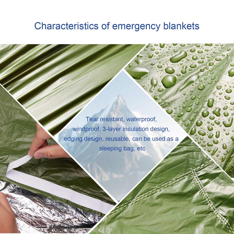 - 【Extra Large Warmth】- The emergency blanket has a unfolded size of 77 inches x 93 inches. The three-layer thickened design is larger and warmer than most emergency blankets. It can better cope with extreme cold, rainstorm and strong wind, and store body temperature in case of emergency.