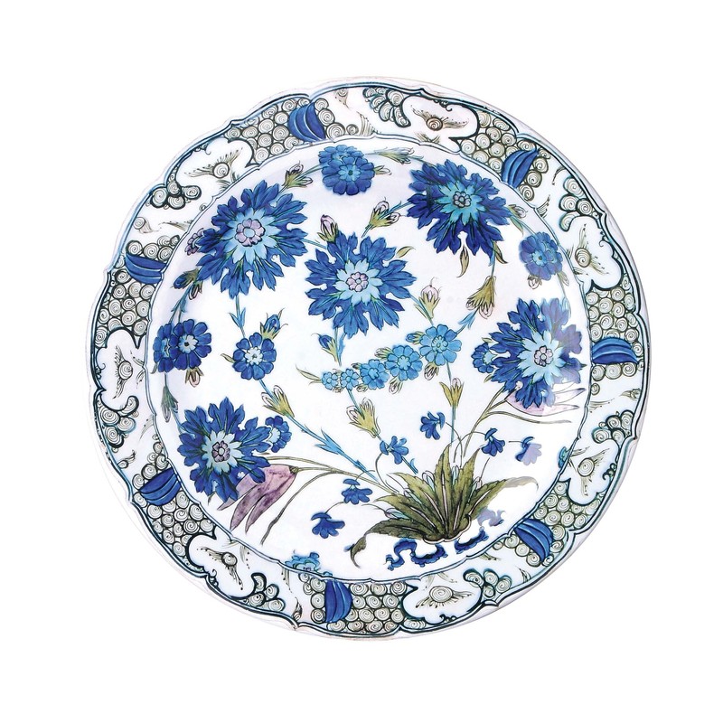 - Isnik pottery of the Ottoman period was among the most colourful ever made. This is a reproduction of a fritware dish, thinly covered with white slip, and painted under a clear glaze. The brilliant palette, exuberant stems of flowers springing from a central point near the rim, and breaking wave border are typical of Isnik designs of about 1550. Accession number C.23-1950