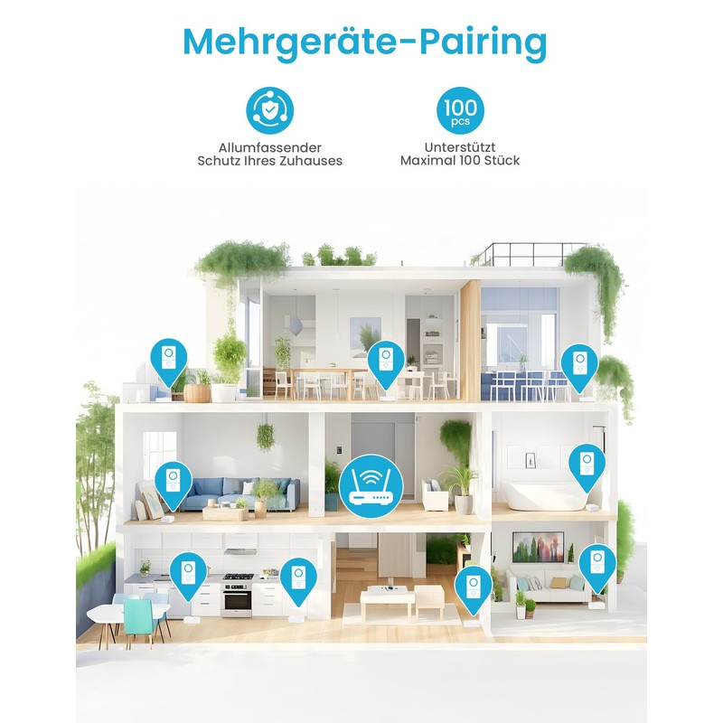 - 【Mehrgeräteverbindung】Der Wasser detektor wifi unterstützt die Kopplung von bis zu 100 Geräten, sodass Sie ihn überall dort platzieren können, wo Wasser austreten könnte. So schützen Sie Ihr Zuhause zu 100 % und vermeiden Schäden durch Wasseraustritt