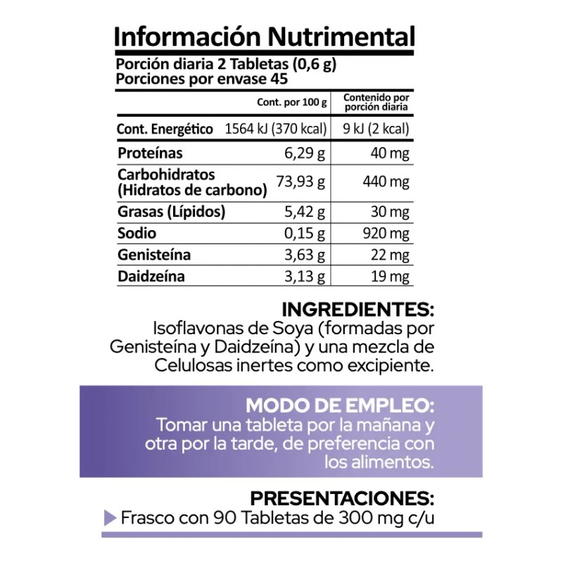 Pronat Ultra presenta un suplemento formulado con isoflavonas de soya, compuesto natural con acción estrogénica suave, ideal para mujeres que atraviesan la menopausia o la perimenopausia. Las isoflavonas ayudan a reducir los sofocos, mejorar el estado de ánimo, apoyar la salud ósea y cardiovascular, y mantener el equilibrio hormonal sin hormonas sintéticas.