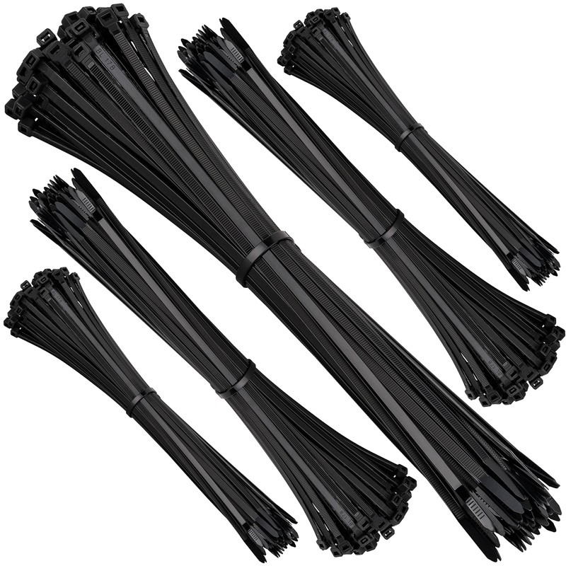 ISOLATECH Cable Ties Black UV Resistant Large Small Long Flat Set 500 Pieces Each 100 Pieces: 100 x 2.5 mm, 150 mm x 2.5 mm, 200 mm x 2.5 mm, 250 mm x 2.5 mm, 300 mm x 3.6 mm