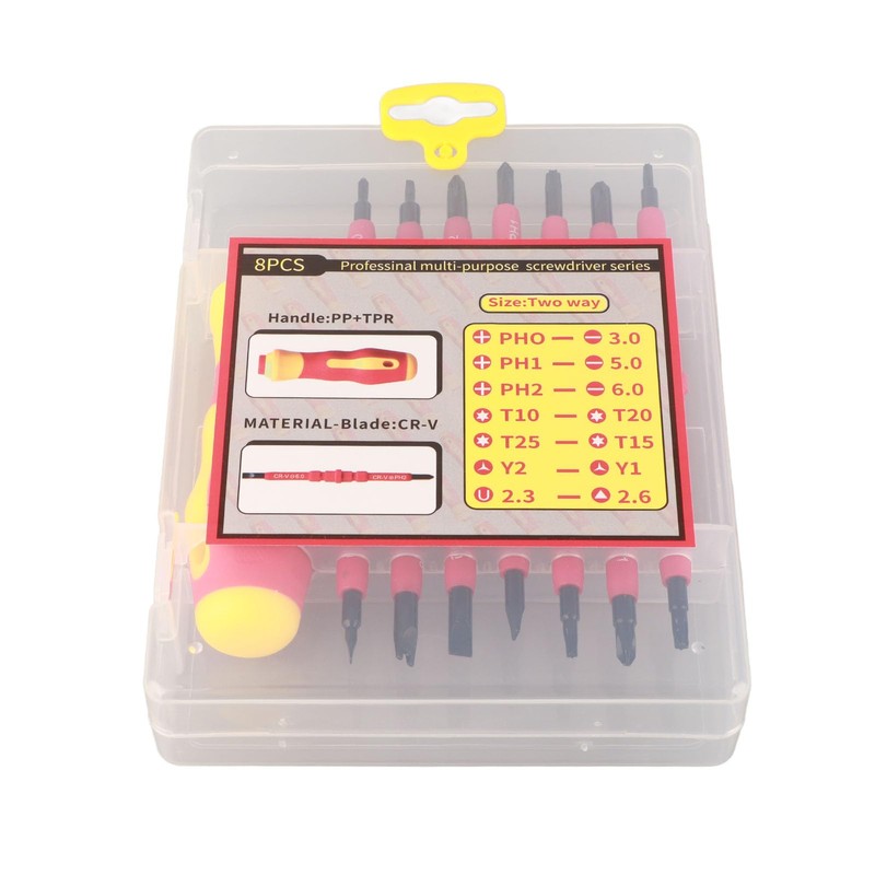 - 8-teiliges Set: Unser Schraubendreher-Set enthält 7 doppelseitige Schraubendreher-Bits und Griffe, die Ihnen eine breite Palette von Optionen für jede Arbeitsanforderung bieten. Sie müssen nicht mehr nach dem richtigen Werkzeug suchen, wir haben alles für Sie