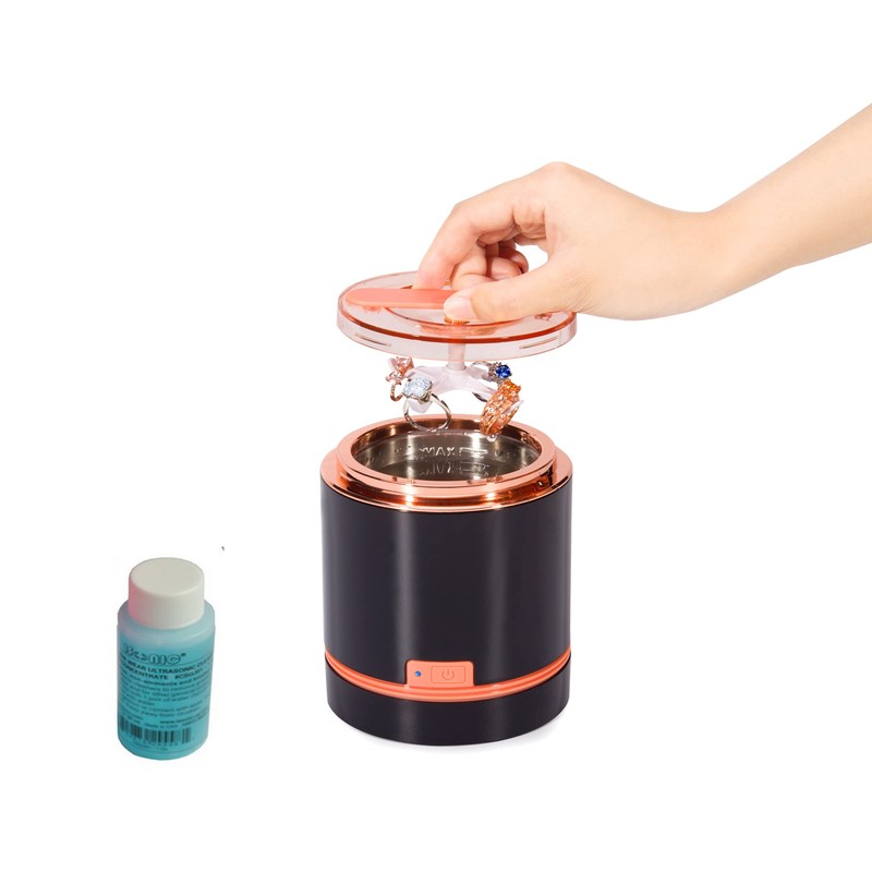 - Compact ultrasonic jewelry cleaner, unit size 4.3"x4.1"x5"
