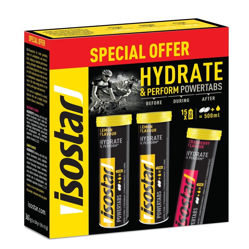 - Contents: 3 tubes of Hydrate and Perform effervescent tablets - 2 tubes of lemon flavour and 1 tube with cranberry flavour. Net weight: 360 g (12 g x 30)
