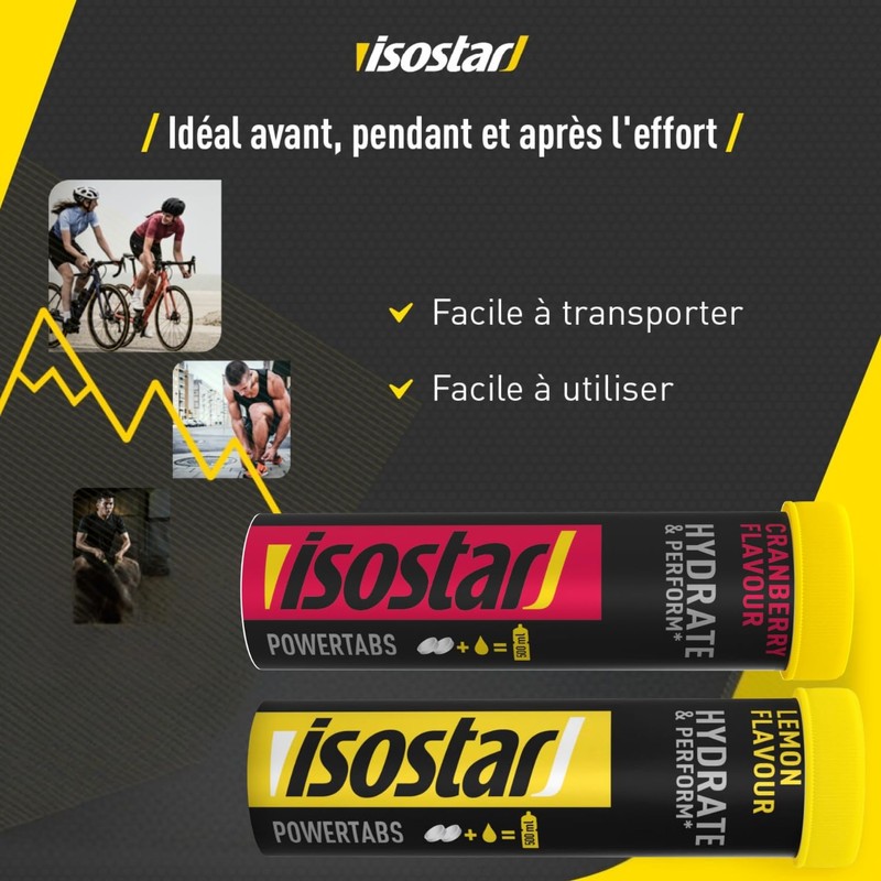 Isostar - Hydrate & Perform Powertabs Lemon and Cranberry Flavour - Tablets for Isotonic Drink - Carbohydrates and Electrolytes Supply - 3 Tubes of 10 Tablets