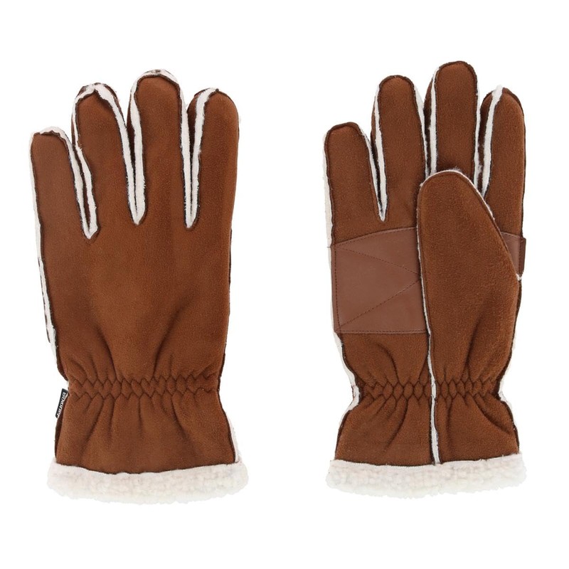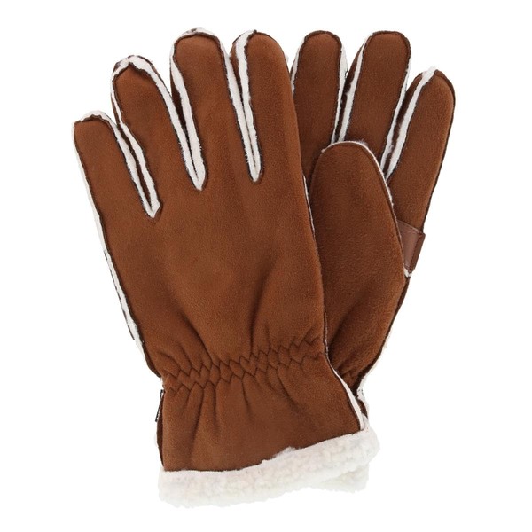 Isotoner Men's Microsuede Winter Glove with Faux Shearling Outseam, Medium, Cognac