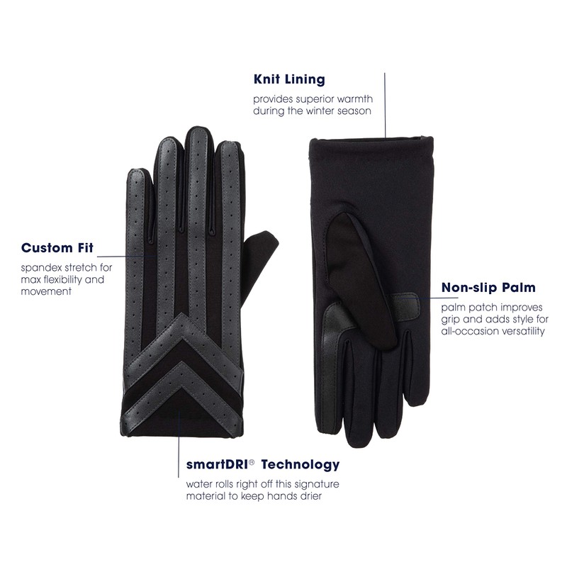 - STAY ACTIVE: isotoner's heritage 4-way stretch spandex provides a contoured yet flexible fit, while the palm strips provide improved grip, perfect for on-the-go lifestyles in winter or cold weather