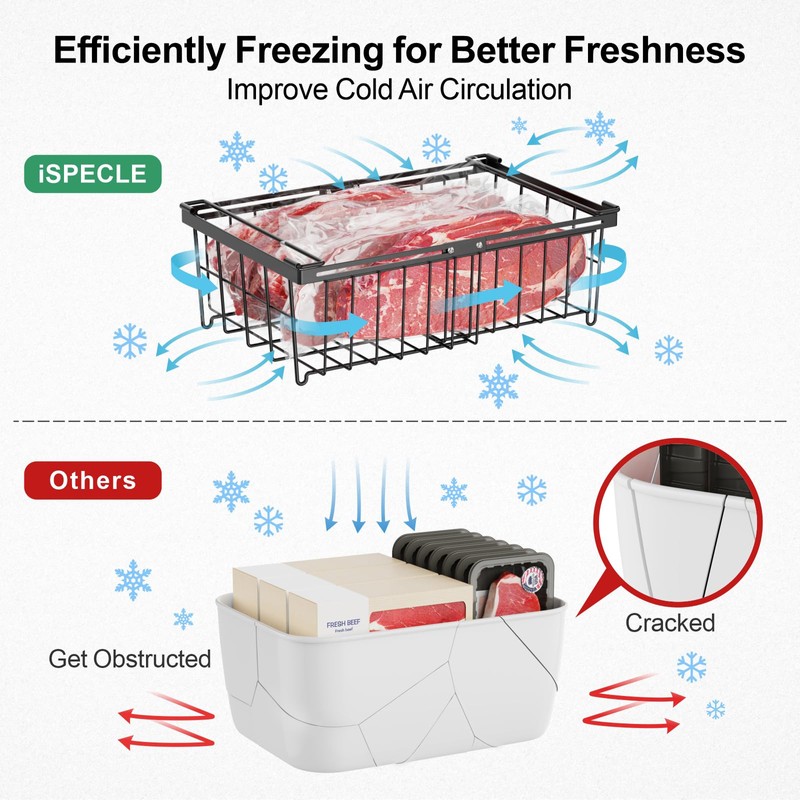 - [Faster Freeze for Better Freshness ] Compared with the traditional four-sided closed plastic box, this freezer storage container is made of open frames, lets air circulate for efficient freezing, and the food can be frozen faster, better preserving the freshness of food, also not affect close the freezer