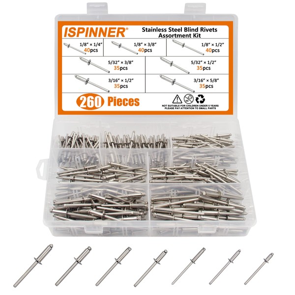 -- Product: ISPINNER 260pcs Stainless Steel Blind Rivets Assortment Kit